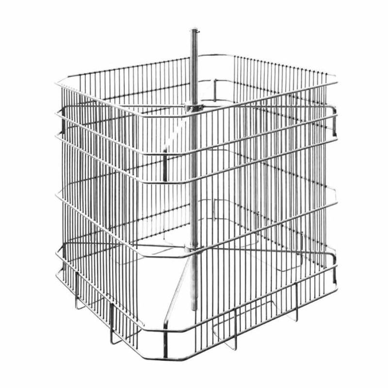 La cuve filtrante est principalement prévue pour le tamisage durant l'extraction. Deux robinets pince en acier inoxydable sont soudés : le robinet pince supérieur permet de vidanger le miel filtré vers des récipients plus bas et le robinet pince inférieur sert à vider entièrement la cuve. La cuve contient un tamis fin de grande capacité et un anneau d'égouttage. Le niveau de miel monte jusqu'au robinet supérieur puis s'écoule dans un seau. Une cuve filtrante remplie permet un filtrage continu : les résidus de cire flottent en surface et peuvent être facilement écumés. Le filet de tamis ne s'obstrue pas, même en cas de filtration prolongée. En fin d'opération, la cuve filtrante est vidée par le robinet pince inférieur.