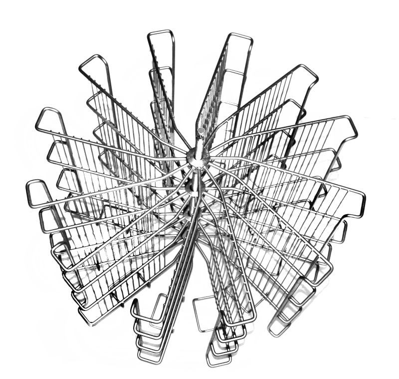 Lors de l'extraction, il n'est pas nécessaire de retourner les cadres, car la force centrifuge et l'inclinaison naturelle des alvéoles permettent de vider simultanément les deux faces des cadres. Le panier est conçu de manière que le cadre s'appuie contre la grille de suspension pendant la rotation, ce qui évite d'endommager le cadre.